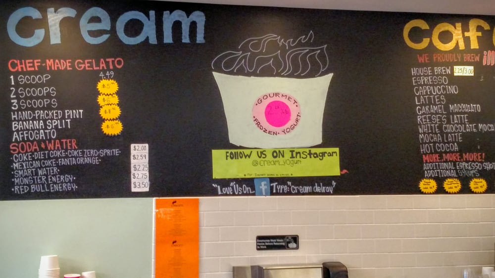 Cream is a delightful dessert spot located in Delray Beach, FL. They offer a variety of frozen treats, including gelato ice cream and frozen yogurt with a wide selection of toppings. Customers rave about the fluffy cloud-like texture of their gelato and the delectable flavors offered. The staff at Cream are friendly and welcoming, adding to the overall enjoyable experience. The menu features unique flavors like banana cream pie and blueberry cheesecake, as well as classic favorites like vanilla with chocolate chips. With options for dairy-free and vegan preferences, Cream caters to a diverse range of customers. The cozy ambiance and live music on weekends make it a perfect spot to satisfy your sweet cravings. Whether you're in the mood for a refreshing frozen yogurt or a rich gelato, Cream is the go-to dessert destination in Delray Beach for a sweet treat.